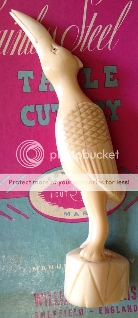 One of the lads carries over a large wooden canteen of table cutlery, and I take a look. The box is a bit damaged and some of the contents missing unfortunately. Among the items on the table I spot a yellow figure, and casually ask the price. "Two quid", I'm told. I hand it over and put the ivory piece into my coat pocket.