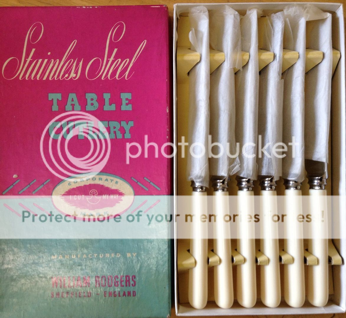 On the very last row, I spot a set of William Rodgers dessert knives, new and in their original box, and can't resist buying them. A couple of crown cork openers are also snapped up.