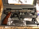 Too many purchases lately so putting this one out there since it's just sitting right now. This one started out as a Ruger Mark III 22/45 Target Model that was transformed by Turnbull Restorations. This gun originally had a polymer lower that did not have grip panels. I bought another Mark III and swapped the lowers so that I could add wood grips to better match the gorgeous Turnbull finish. Grips are cocobolo that look great in my opinion and really take the looks up a notch. I bought this one new a few months ago as new old stock and have not even chambered a round much less shot it. Comes with plastic case, paperwork, gun lock, picatinny rail, the wrap around Hogue grips that were on the donor gun I bought and 3 mags.