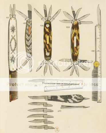 Knives have been around forever and it isn't a stretch to think that rulers have accompanied them since early on. It is known through "Smith's Key" from 1816 that a knife with a ruler on the handle existed over 200 years ago in England. Certainly, knives with rulers incorporated were in existence long before that. In the late 19th and early 20th centuries, all metal ruler knives were fairly popular and were produced by several Sheffield cutlers. Since then, many unique ruler knives have been produced by various cutlery companies from around the world. Enclosed are a few examples and please feel free to add more.