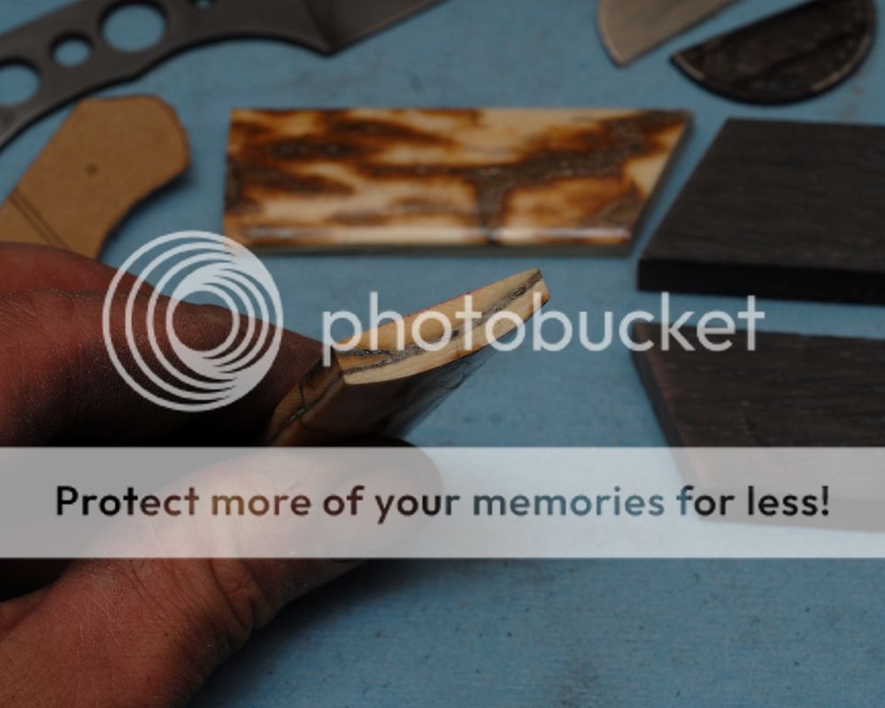 It's Been a little while since we heard anything on this project. I hope Codger is doing well, and everyone is enjoying the holiday season. I have an "SPK 7.5" order coming up (Codger's) in Ivory, Silver spacer and Bog Oak. He provided a beautiful set of Bark Ivory scales and worn silver coin. I have not done much work with Ivory so I decided I had better work one out before I move to Codgers prized Ivory.