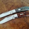 *Ryuichi "Ryu" Kawamura Custom Knife. This is a beautifully styled Split Back Wharncliffe Whittler knife by Ryu enhanced by the engraving of Master Engraver Jon Robyn. This knife features a Wharncliffe master blade and secondary pen and coping blades, jigged bone handle, escutcheon with gold inlay and game birds engraved on each bolster with gold inlayed bordering.