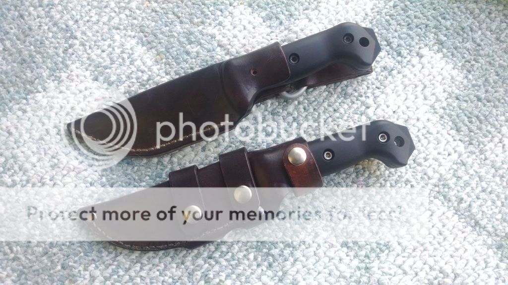 Anyway, I really like the dual carry option on the rig. Versatility plus. I've never had the pleasure of carrying a large knife scout style so this appears a bit foreign to me. But I can see how it would be very convenient especially in some circumstances (riding horses, ATVs as mentioned). Really cool sheath for the.. um.. which knife was it again?![]()