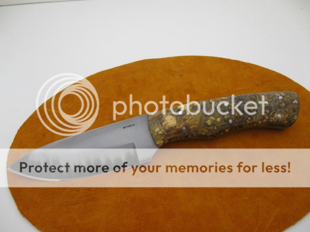 The handle is stabilized box elder. 416SS pins.