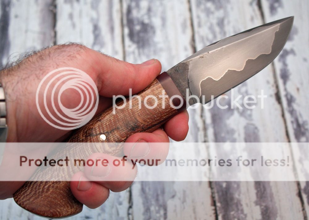 The handle is stabilized sycamore. It is mortised tang. It fits the hand well.