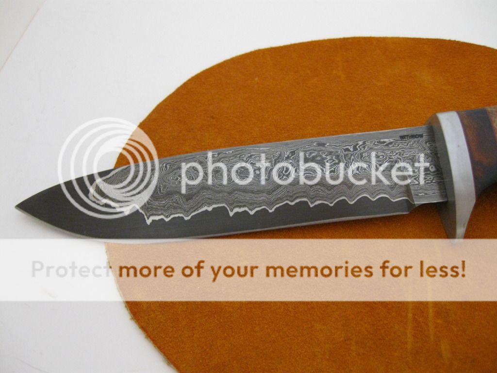Steel is Damascus forged to 1095. 1095 is the cutting edge. .157 thick.
