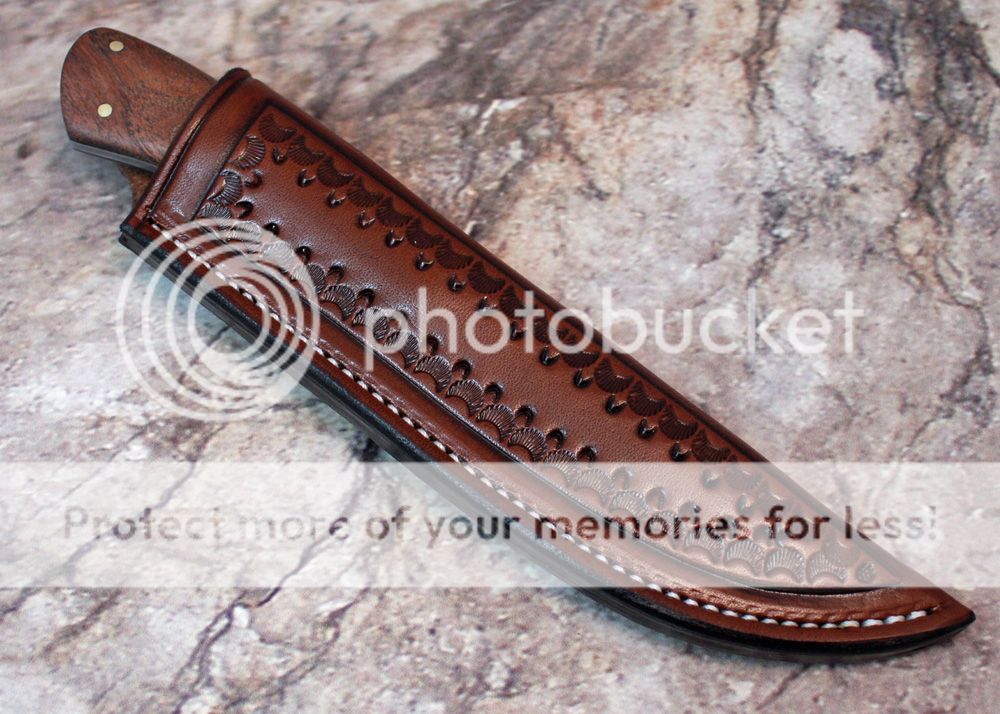 The sheath is 7-8oz hand tooled leather from Wickett and Craig.