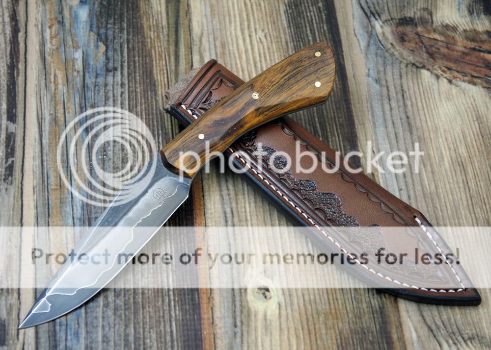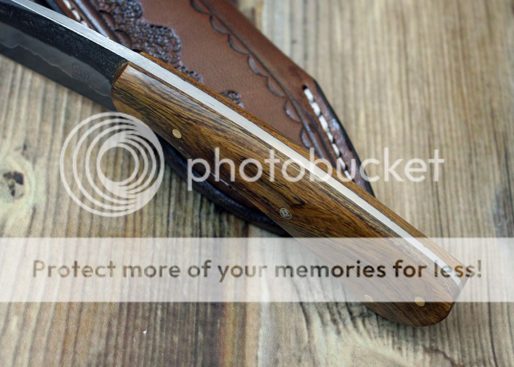 The handle is some desert ironwood from Arizona Ironwoods. It is shaped and sculpted to fit the hand well. it is held in place with pins and G-flex epoxy.