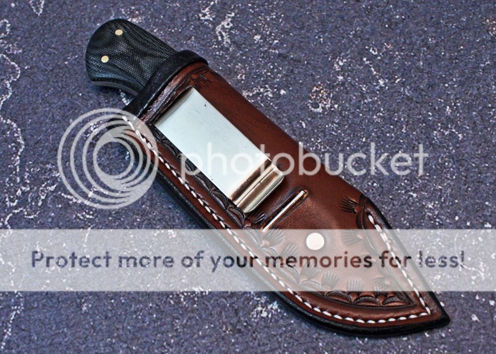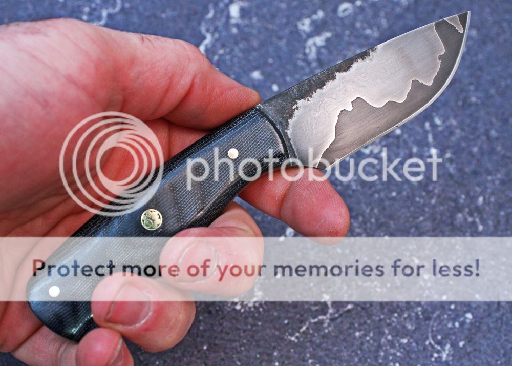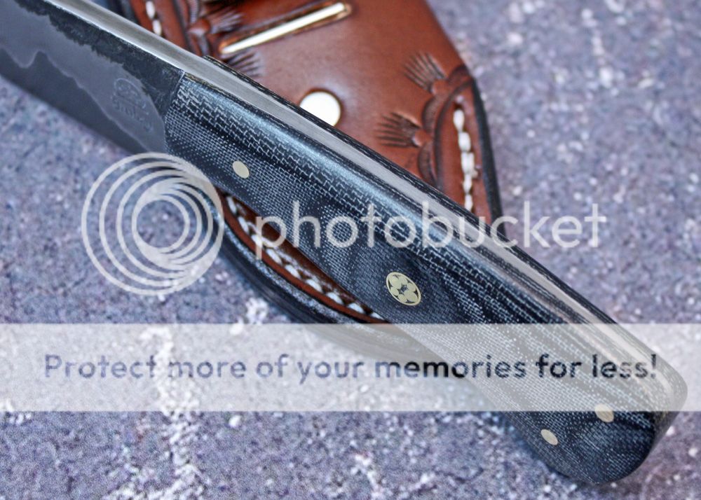 The handle is black canvas micarta. It has been sculpted and shaped to fit the hand well. It is held in place with pins and G-flex epoxy.