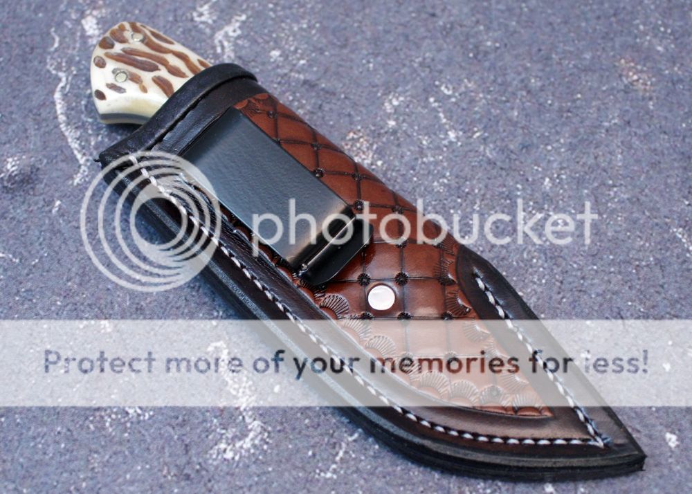 The sheath is made to be worn in the right hand pocket. It can also be worn on the belt on the left side. It is lined with upholstery leather and the knife slides in nicely and draws easily.