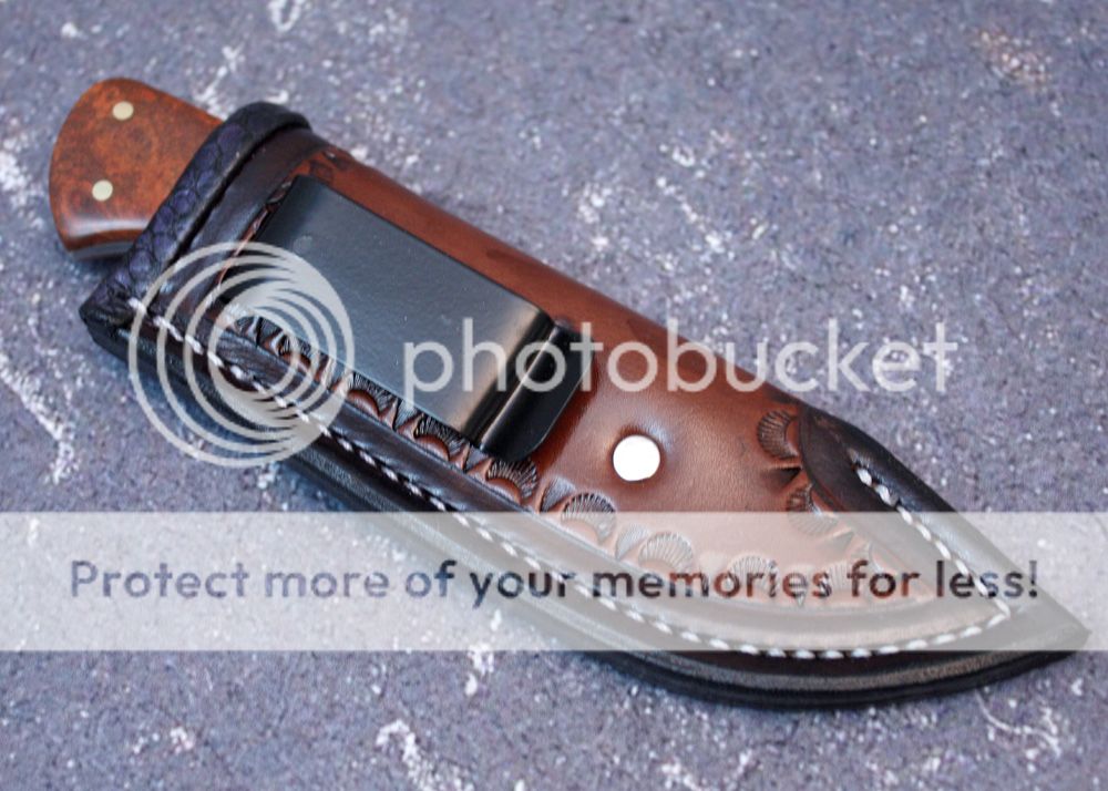 The sheath is made to be worn in the right hand pocket. It can also be worn on the belt on the left side. It is lined with upholstery leather and the knife slides in nicely and draws easily.