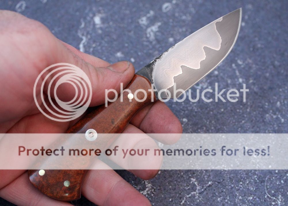 Here is a San Mai blade. It has 1084 as a core steel and a high nickel low carbon "sandwich" layer. It has been sanded and polished to 800 grit then etched to show the different steels. It is razor sharp and ready to go.