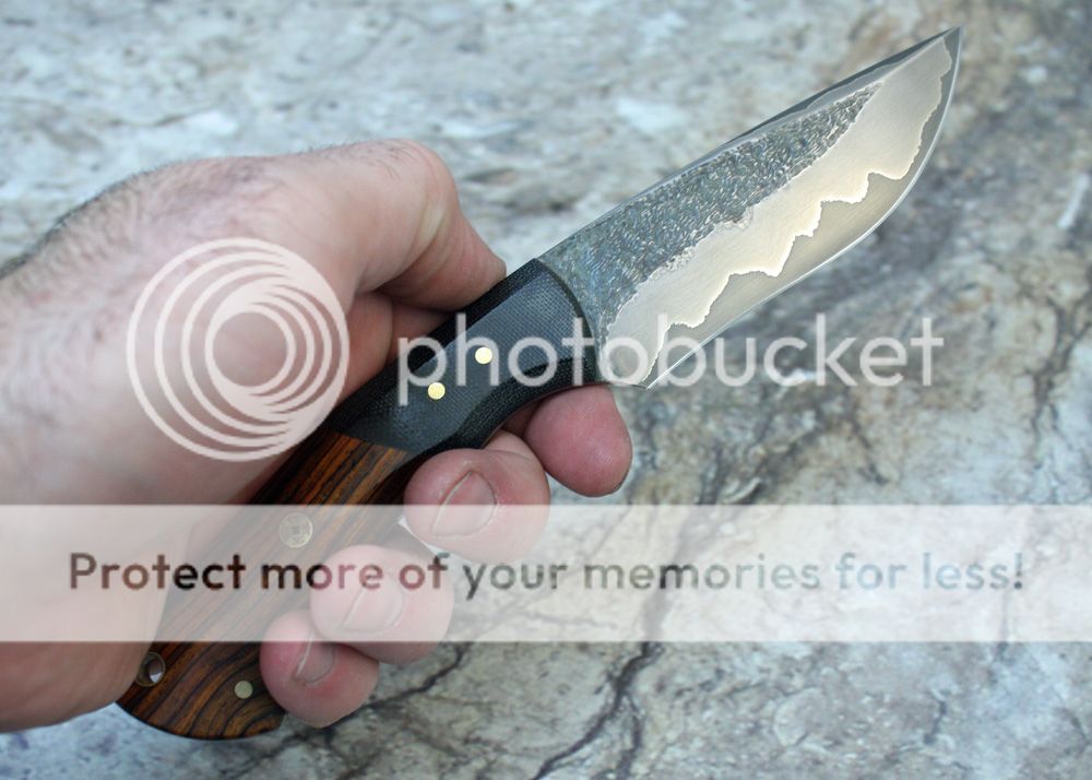 The handle is really nice cocobolo with black canvas micarta bolsters. It has been sculpted and shaped to fit the hand well.