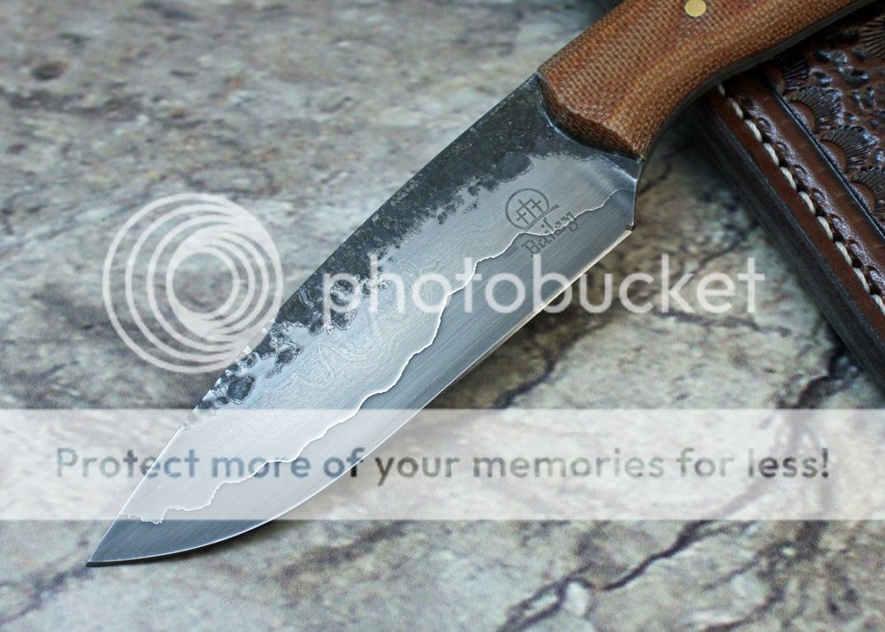 The handle is natural canvas micarta. It is shaped and sculpted. It is held in place with pins and G-flex epoxy.