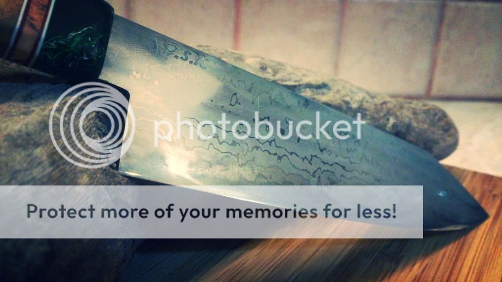 The blade is suminagashi and white paper steel at 17.5cm long.