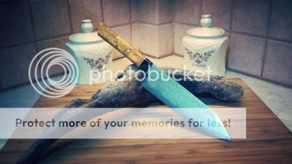 The handle is Raffir Ntangle Green, Birds Eye Black Cherry Burl spacer and Black Locust Burl