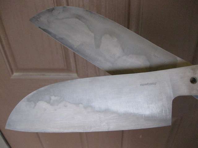 I am working on some santokus in 1095 and I am liking them so far. They are a lot of fun to do as with the wider blade you can play around a bit with the clay.