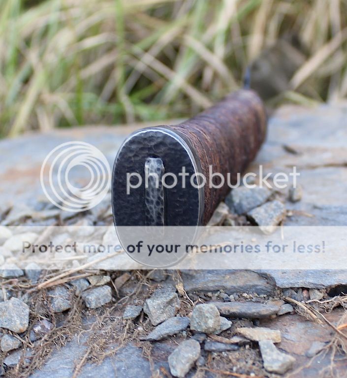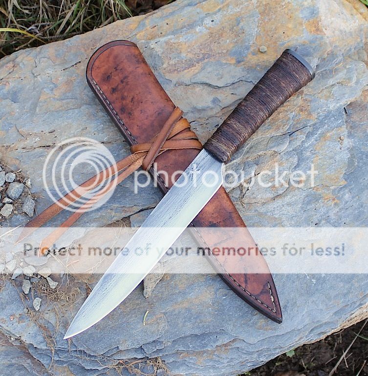 Handle is leather backed, hemp wrapped, epoxy soaked with a peened pommel cap