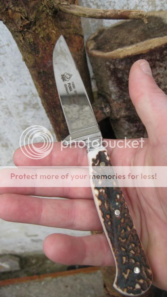 Here I am very late to the game... not only because today is Sunday, but also because I only recently added a stag handled knife to my collection. Never been a stag lover, but she is starting to grow on me... well, maybe just a little, lol! ;-) The knife is a Tidioute fixed blade knife with a burnt stag handle.
