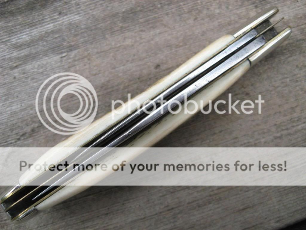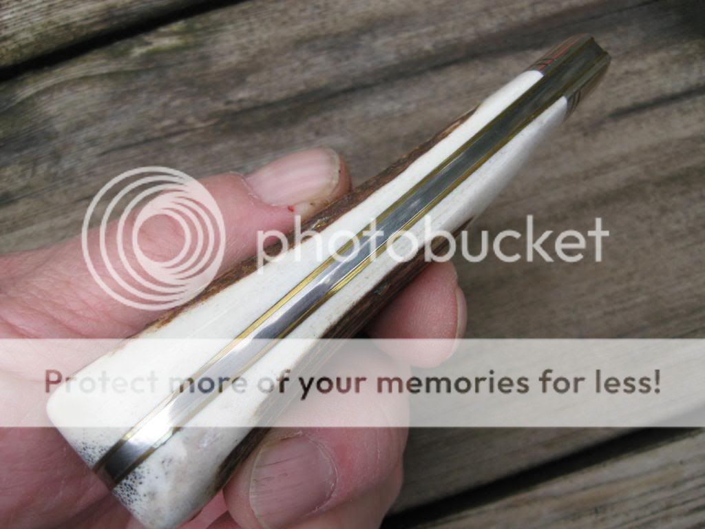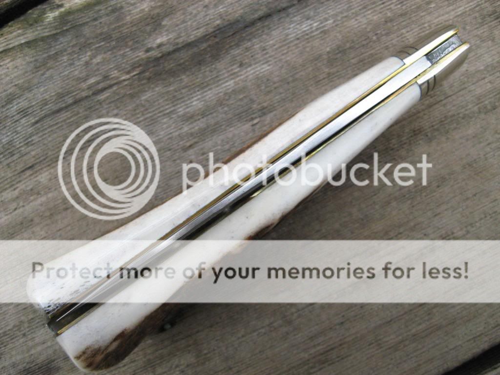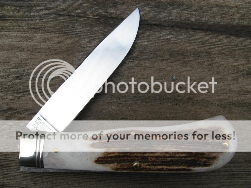 This is a Schrade Fire and Ice large trapper out of my personal collection. It was made by GEC on the 23 frame and has had the spey blade removed and has been re-hafted in genuine Roosevelt Elk Stag. The modifications were made by Muskrat Man Knives. The stag is exceptionally thick on this knife, perhaps too thick for some. Never the less, it is in new condition and is a one-of-a-kind customized knife. PayPal only please and I'll pay the fees and shipping with insurance. First "I'll take it" followed by a PM gets the knife. $145 NOW $125