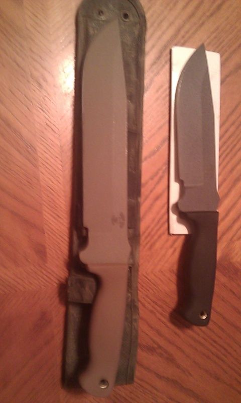 1) Desert Dog Father, never used, never sharpened. Comes in a Scrapyard sheath that was unsuccessfully painted. $250 shipped conus. Now $240 shipped