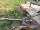 In the photo below you can see a 12 to 15 foot branch from a dead tree. It was approximately 6 and 1/2 inches in diameter. I purposely made processing the wood as hard on the knife as possible. I wanted to test the legendary toughness of CPK'S delta 3V for myself.