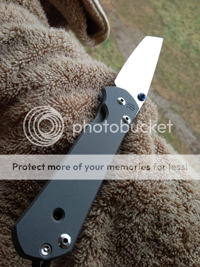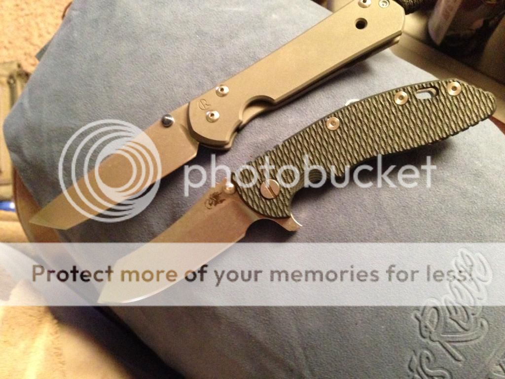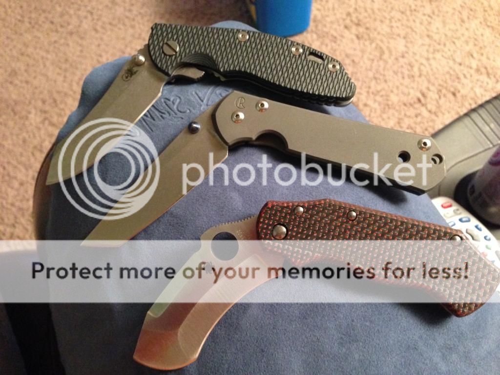 This is a large Sebenza 21 Tanto with an extra drop point blade. It originally came with the S30V Tanto blade in 2010, and was sent in for an S35VN drop point blade replacement in 2013. It's currently wearing the Tanto blade, which does have a small chip on the end, I couldn't get it to photograph, but I can feel it. It comes with the straight blade in mint condition 2 boxes, crk hanky, and both birth certificates. The scales have 2 or 3 light snail trails, and lockup is typical Sebenza late but rock solid. I'm asking $400 SPFwhich I paid 2 weeks ago. No trades on this one unless it's an XM-8 spanto 3.5". Thanks.