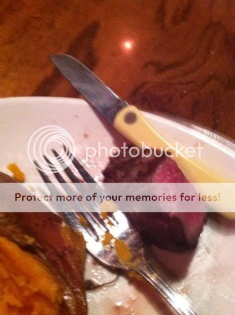 The wife took this picture the other night with her phone after I wandered off for a minute to speak to a friend of mine, the other teachers didn't believe her when she told them I used a pocket knife to cut my steak at restaurants.