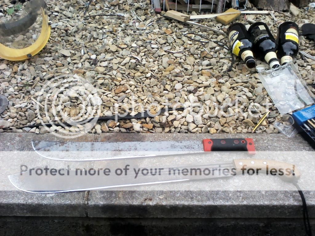 At this stage I'm restricted to hand tools - don't have the funds to spring for a belt sander yet. I do have a handheld belt sander, files and angle grinder. I have a number of machetes and "sword-like" machetes, most of which have a pretty sad edge. Any tips or hints for improving the factory edge using hand tools?