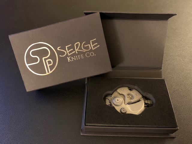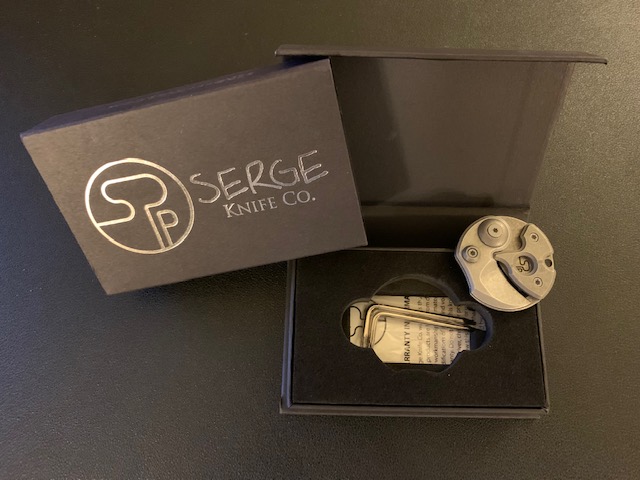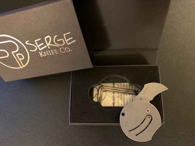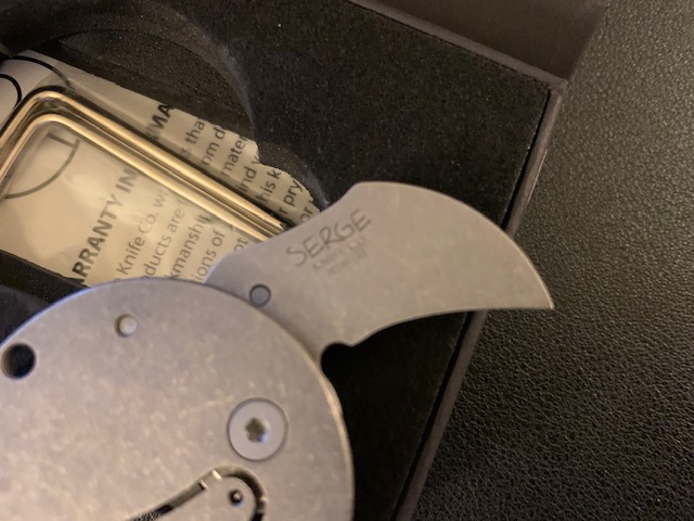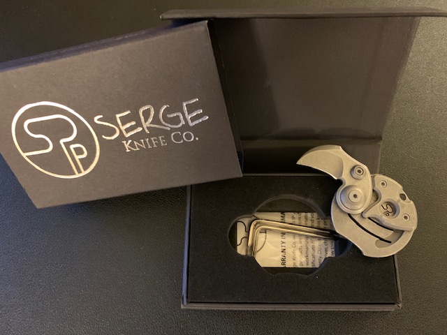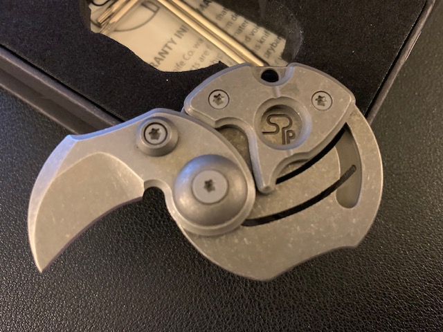 This is a brand new Serge Panchenko Production Coin Claw Gen 2 Slipjoint folding knive with 1” M390 hawkbill blade and stonewashed titanium handles; very smooth action, never been used or carried, just admired. It comes with its original box, tools, and papers still in the box. Here are some quick pictures: