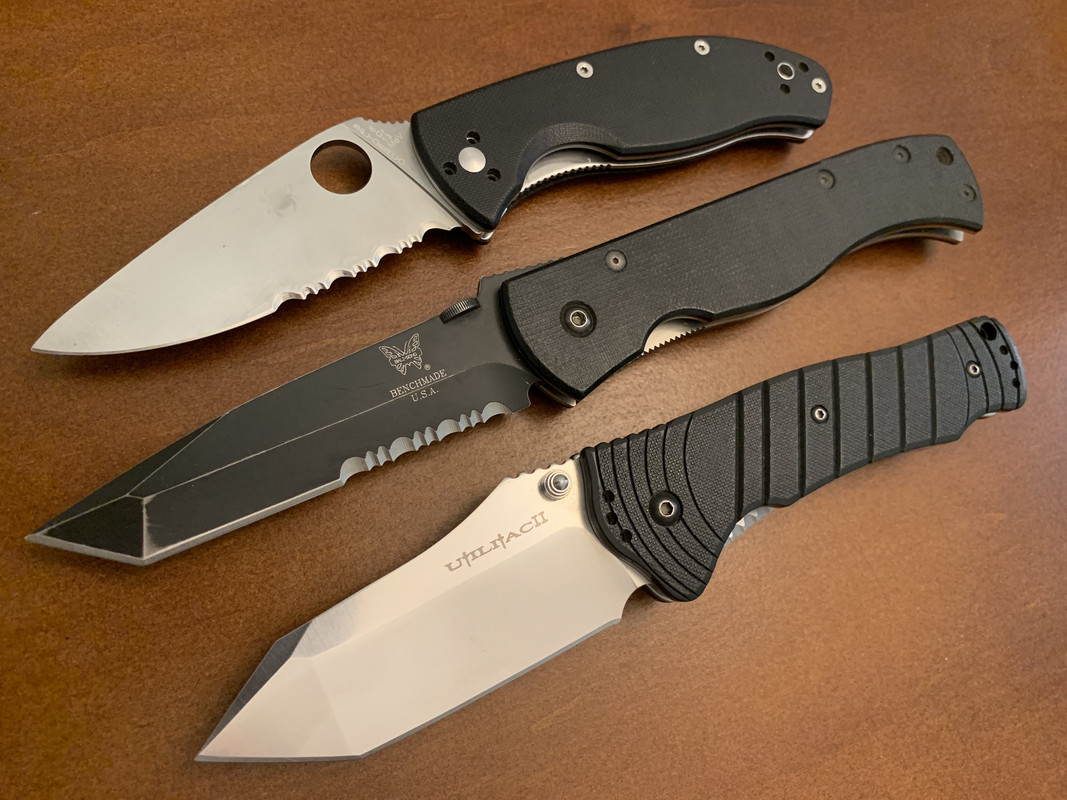 Two of the knives I keep on my person just for protection are a fully serrated Combat Troodon tanto and a Spyderco Civilian. Both of those would do massive damage. Not surgical in the least, but oof...
