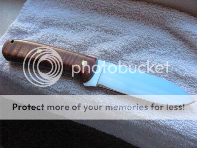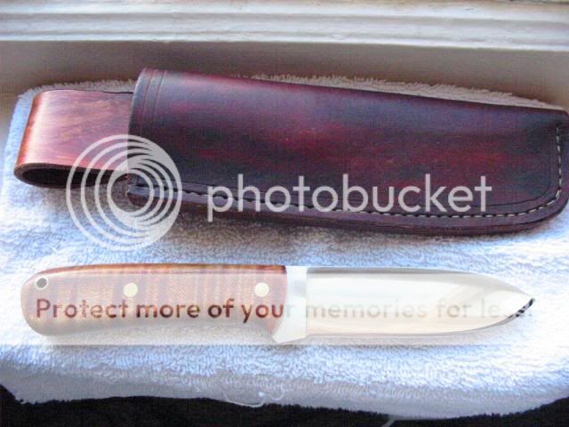 Frank Aguire Custom Kephart Mirror polished A2 steel, dark curly maple handle, convex edge. Comes with heavy duty leather sheath. Never used. Price - $110