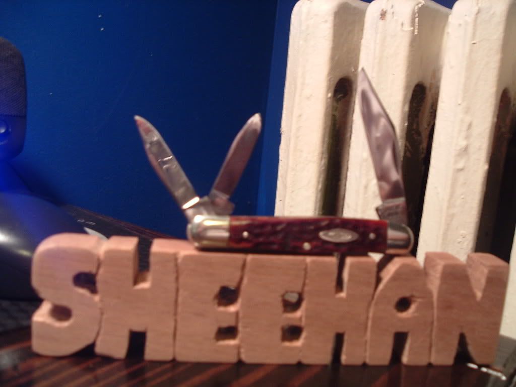 Waynorth let me have this Case 6308 in a trade. It stayed mint from 1975 right up until the minute I received it! It's still in fantastic shape, but I used it recently to whittle my family name out of a very hard piece of wood that came as a spacer in one of my cigar boxes. It is now the ony knife I want to whittle with - even though I probably should have "collected it" due to its unusual "double struck" tang stamp. Oh well, I'll "collect" the next one, this one's just for my personal use!