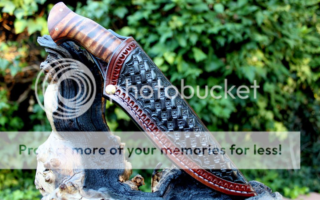 Sheath: 8-9 oz. Hand Tooled/Hand Stitched Leather. (Right hand)