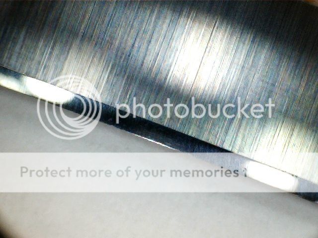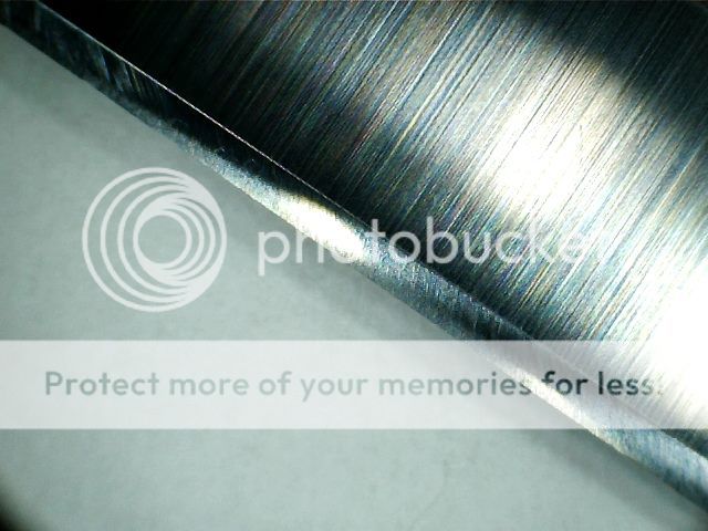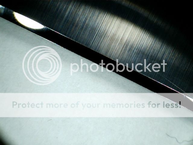 At this point I swapped over to Kens Diamond films mounted on glass. On some of these pics you will see the odd chip , that's from me. The knife had several large chips in it , I didn't remove all of them , as that would have been a lot of work. With subsequent sharpenings they will come out.