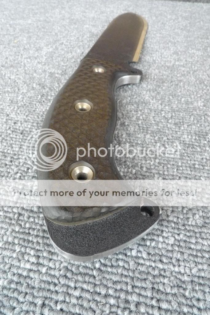 I have since stripped the crinkle coat to reveal a nice fairly smooth blade with some cool INFI pitting at the ricasso and the butt, but don't have photos at the moment.