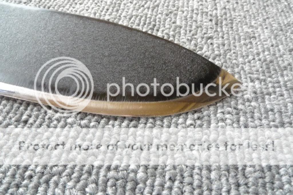 I picked this SHe up on the exchange. This knife I believe dates back to around 2000 so 14 years has taken its toll. This came with a CG coating except the spine and underside were satin from the factory.
