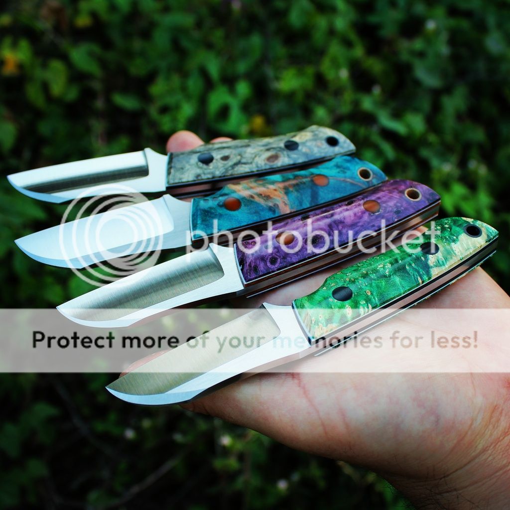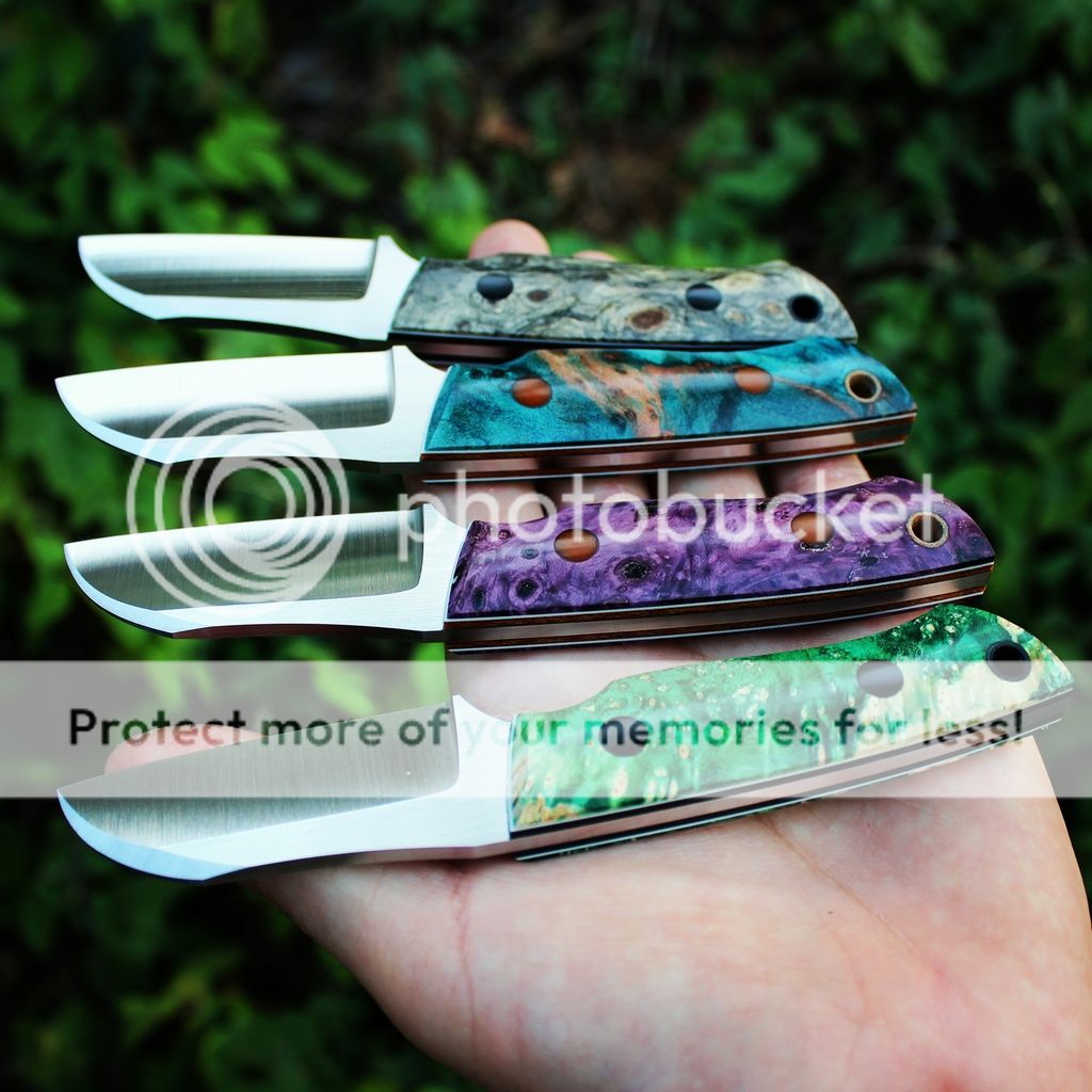 Hey everyone I have a handful of some very nice pieces today. These will be the last of the Sheeptoes until I get another batch together. Also as an FYI 3 of the 4 blades are hollow ground, the fourth (GREEN) is flat ground. Hope you all like them!
