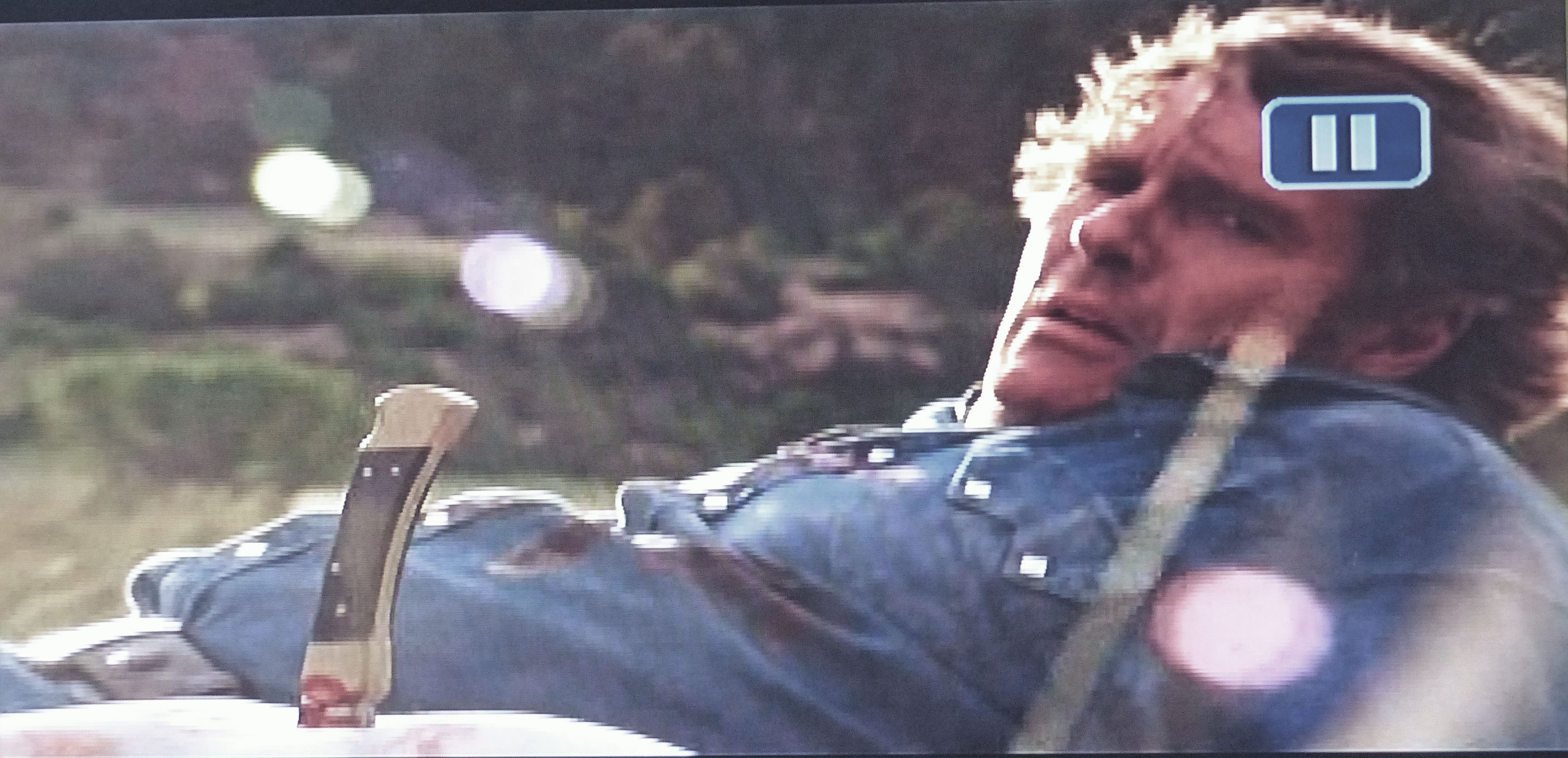 ...The 110 is something of a character in the show. Longmire wrecks his Bronco (did I mention he drives a Ford, of course) and needs to cut himself out of seat belt. Bloody hand with chunk of glass reaching for the Buck 110 on the ground.