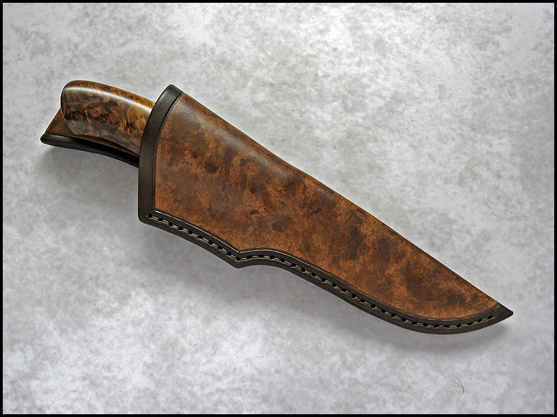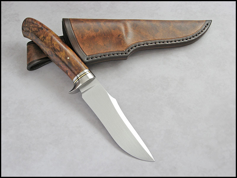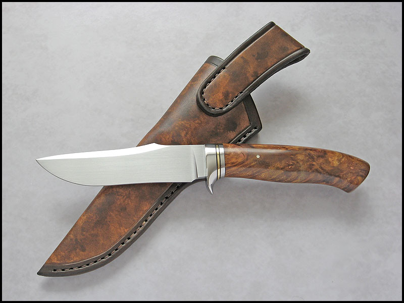 handle - dyed and stabilized Maple burl, stainless steel, brass, fiber, NS