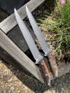 Arrived home, this afternoon, to a white box that contained these two, from the pre-order. I’m pretty darn thrilled. Desert iron wood and antique micarta.