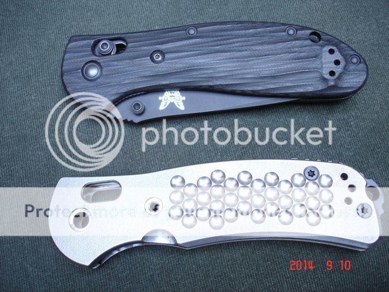 Brand new Wilkins GRIP BMGx2 Titanium natural finish, Grade 2 titanium handles with black hardcoat anodized aluminum spacer. Fits large Griptilian knives. (I paid $210.47, including shipping.)