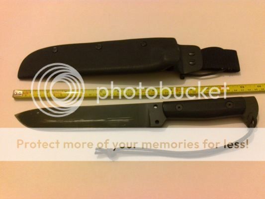 That's an old one! I came up with that design around 96-97 if I recall. I put it together using input from Greg Davenport when he was running his school. Very few of them went out with the double lanyard holes up front. It is just a simple drop point design with G10 grips and a hammer pommel. If anyone gets a chance, Greg is definitely one of the top instructors in the field of survival! Read his books too! I had a blast on his winter course :)