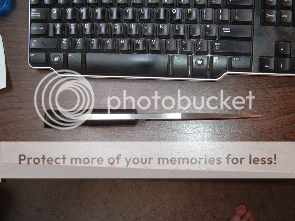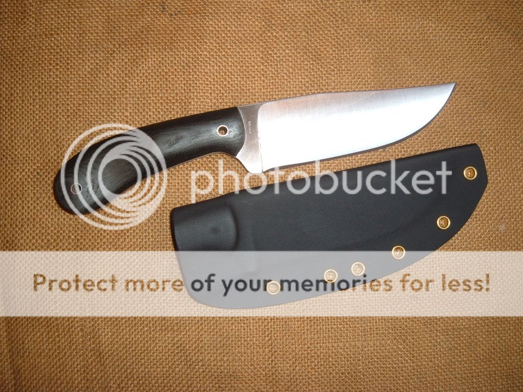 Clip point camp knife. 5 3/4in blade and 10 1/2in overall. Simple pattern in 1/4in thick 5160. Clip is not sharpened. One available in black micarta. Comes with a Kydex sheath set up for a large Tek Lok(not included).***Now $200*** shipped in the US.
