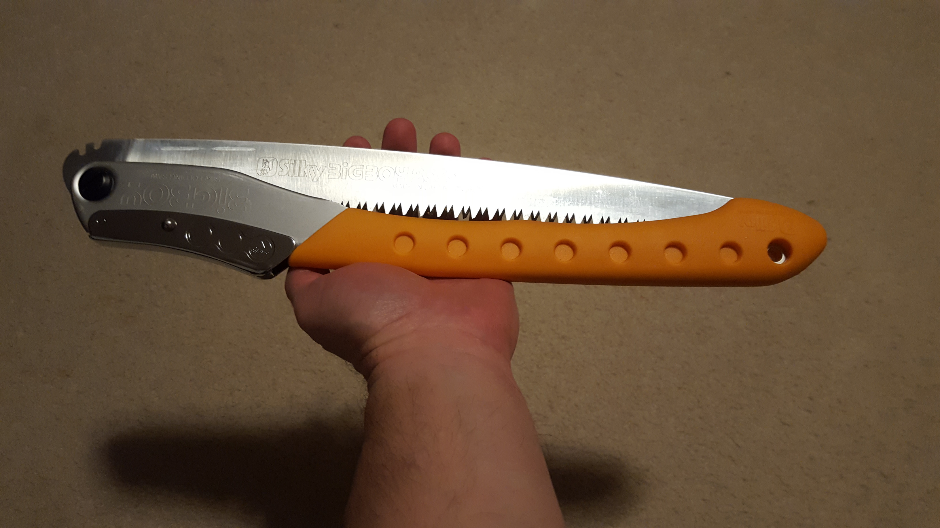 Using the bigboy really is fun. It only cuts on the pull, so I have to be careful not to push it too hard, especially if it catches while pushing. I've managed to get the blade to for a shallow S shape for a split second a few times when I put too much muscle into the push. If I can glide the blade forward then give it my all on the pull, I can get into a really good rhythm. I've cut fresh pine and a variety of really dry stuff including birch and maple and black locust. It goes through it all equally smooth.