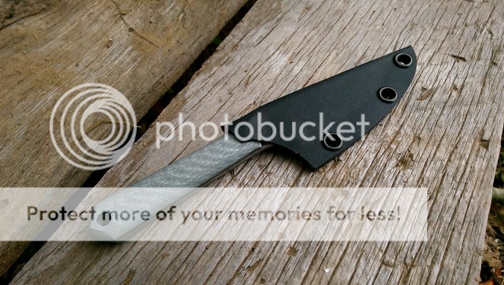 Comes with kydex sheath spaced for large tek lok (1.5 inch spacing)
