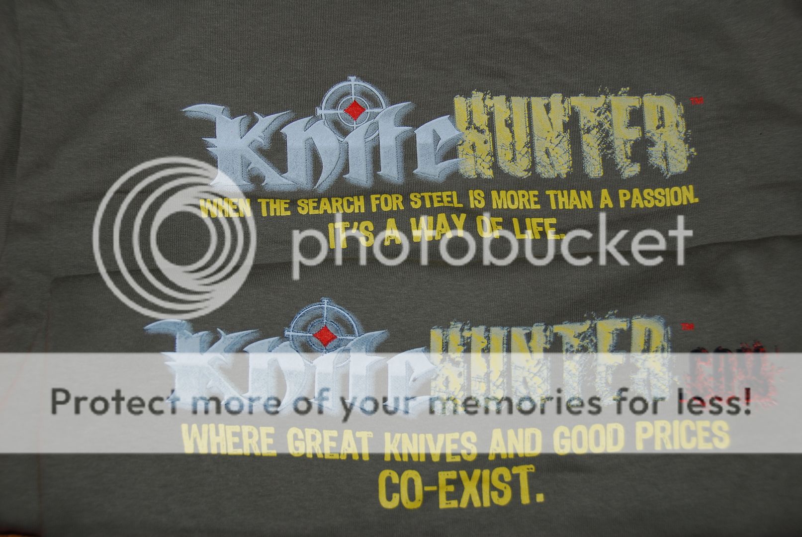 Knife Hunter T-Shirts are lucky $7 +15 for the first and $7 for the rest. They are only $7 if you purchase anything else on the site essentially off setting your original shipping charge as a show of appreciation for your support. I will be having contest in the future and a requirement could be post your knife and Knife Hunter T-shirt to win, or you and your KH T-shirt etc...Hint Hint