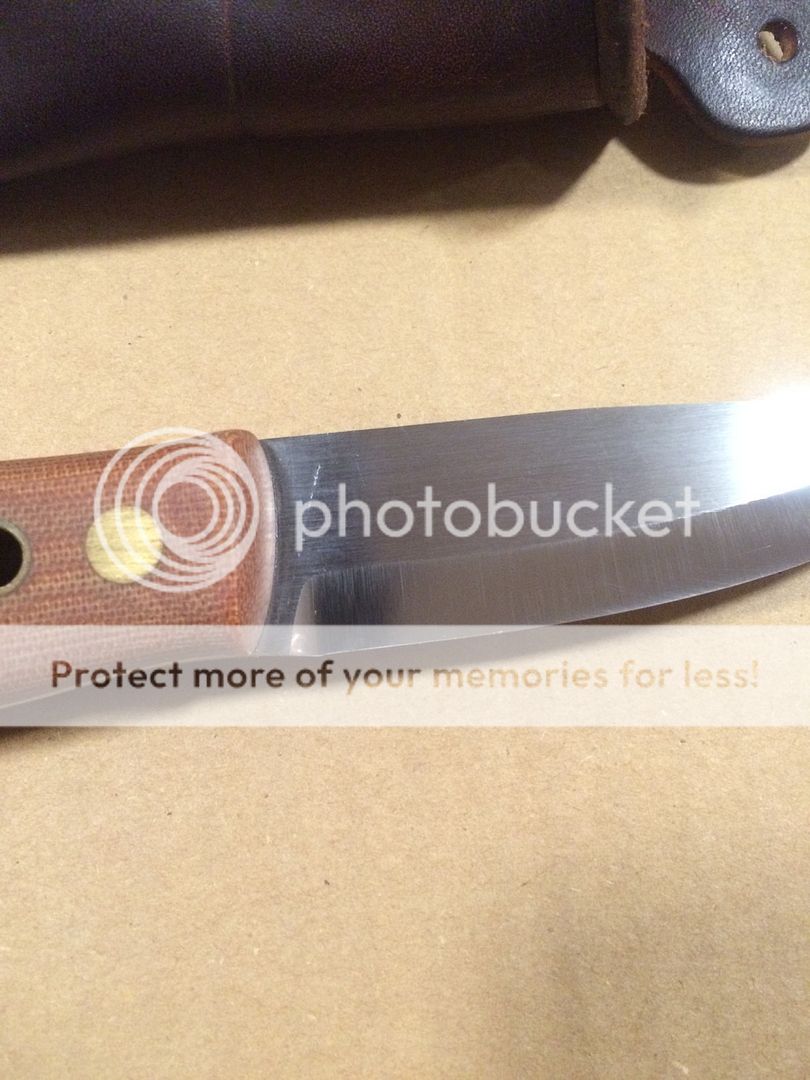 Natural micarta skookum bush tool in 3v. Just received from Mr Garcia about 2 months ago. Never used only fondled. In the spirit of full disclosure the blade has a mark on both sides near the top of the handle, these were here when I received the knife. The sheath also has a mark on the back, that ones on me. Asking $spf shipped (insured), PayPal fees on me. I will ship internationally but the buyer will be responsible for full shipping cost. More pics are available if needed.