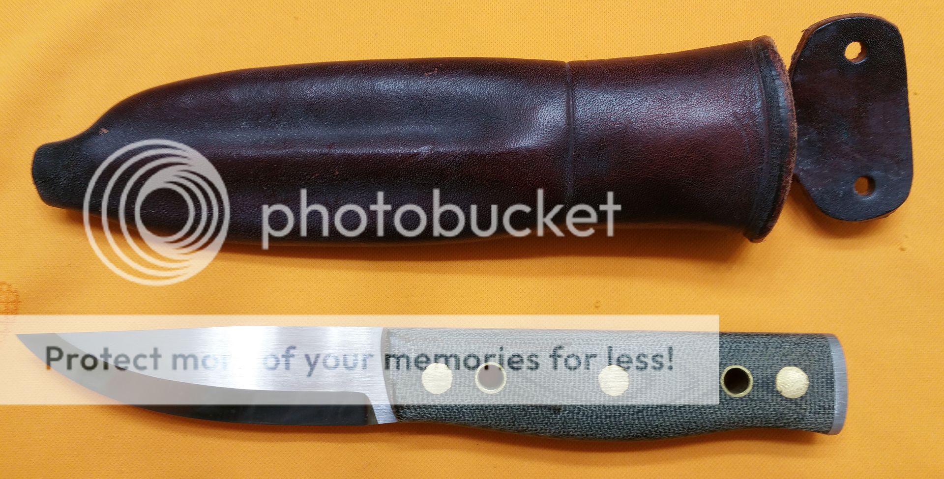 Lightly used, unsharpened. The light use has not marked the blade as it was making a few feathersticks in soft wood. The blade has scratches from the sheath.