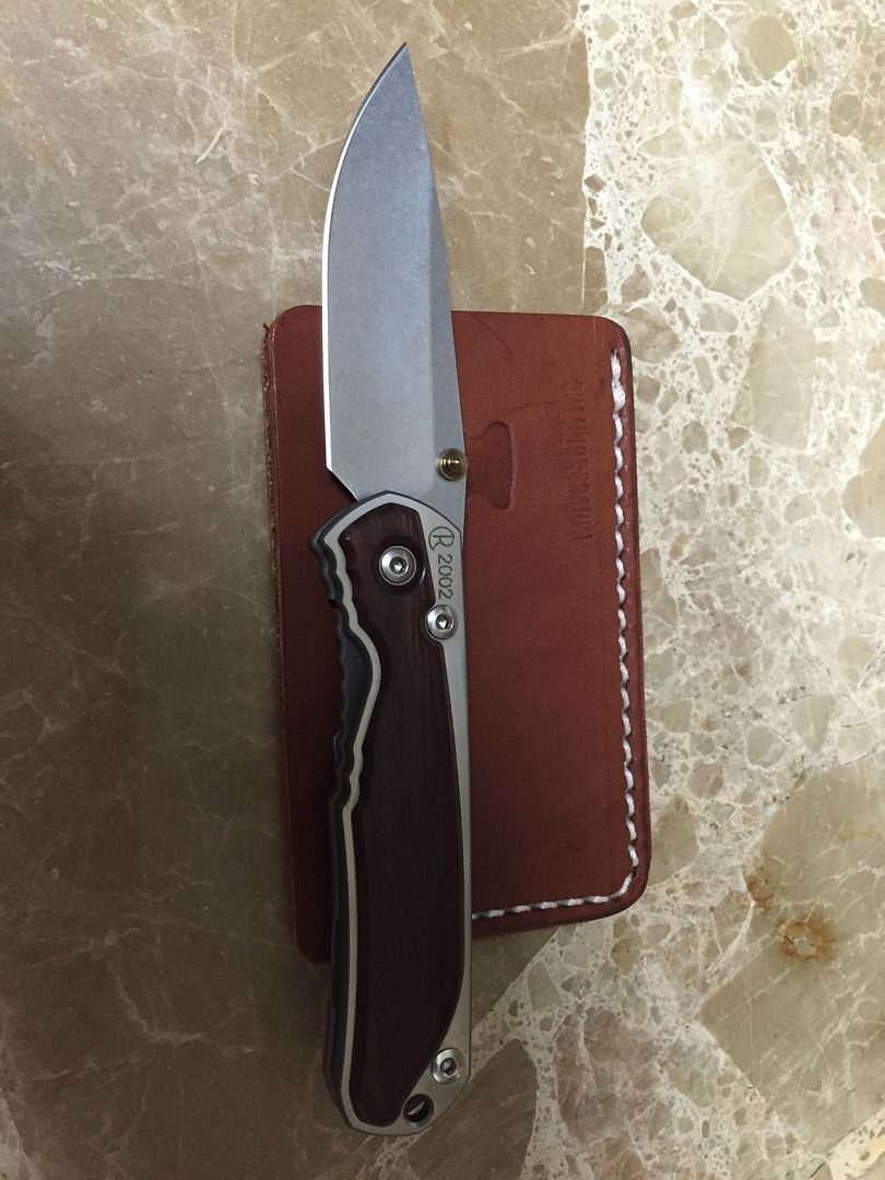 This 2002 small annual is in terrific shape with perfect inlays. The current blade, which was fitted by CRK, is stonewashed with dual lugs. The extra blade, which was the original blade, is in terrific shape but was sharpened at some point in its life. The original blade is polished with dual lugs AND a swedge.